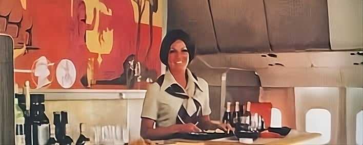 Onboard lounges, elaborate tropical meal service, and even bar seating made long-haul flying feel like a tropical vacation.